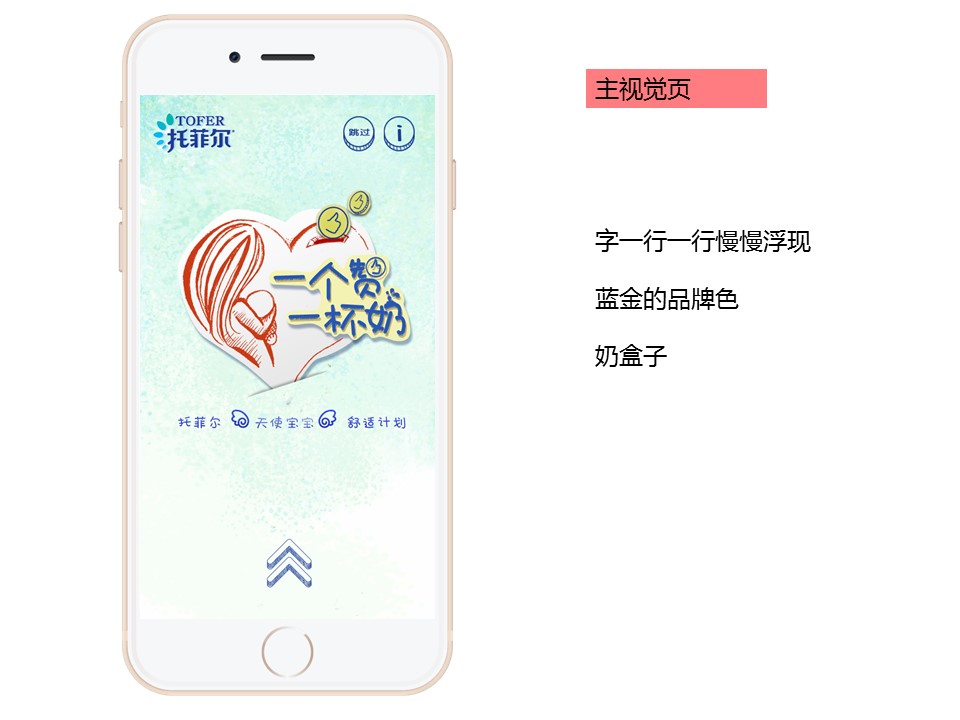 “一个赞一杯奶”的活动是慈善性质的牛奶众筹活动,用户通过录制号召语音 分享朋友圈邀请好友点赞,本人能获得一张100元代金券,当用户积攒满30个赞时,即为天使宝宝众筹到一罐托菲尔奶粉,本人还可得到一张刮刮卡,H5必须是托菲尔会员才能参与,每个人(不用是会员)微信授权、有三次点赞机会,对不同作品只有一次点赞机会,自己不能给自己作品点赞